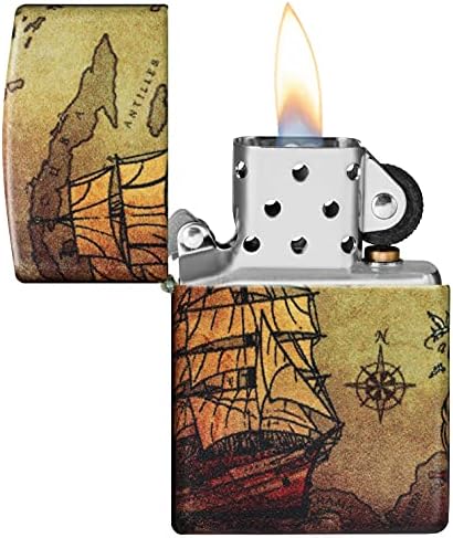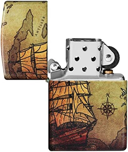 Accendino Zippo® Pirate Ship Design 49355, Accendino Antivento Ricaricabile Zippo, Realizzato in Metallo con Caratteristico “click” Zippo, Color Mappa Vintage, Made in USA, Ottima Idea Regalo – idea regalo inter