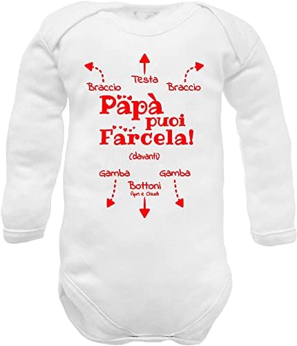 body neonato manica lunga caldo cotone con frase Papà puoi farcela e istruzioni per vestizione (Regalo papà cc ml TG 00: 0-3 mesi) – idea regalo inter