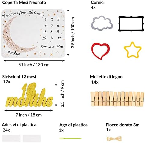 Coperta Neonato In Italiano | Con Porta Foto 12 Mesi | Per Maschio O Femmina, Unisex | Tema Luna E Stelle | Regalo Baby Shower Personalizzato – idea regalo milan