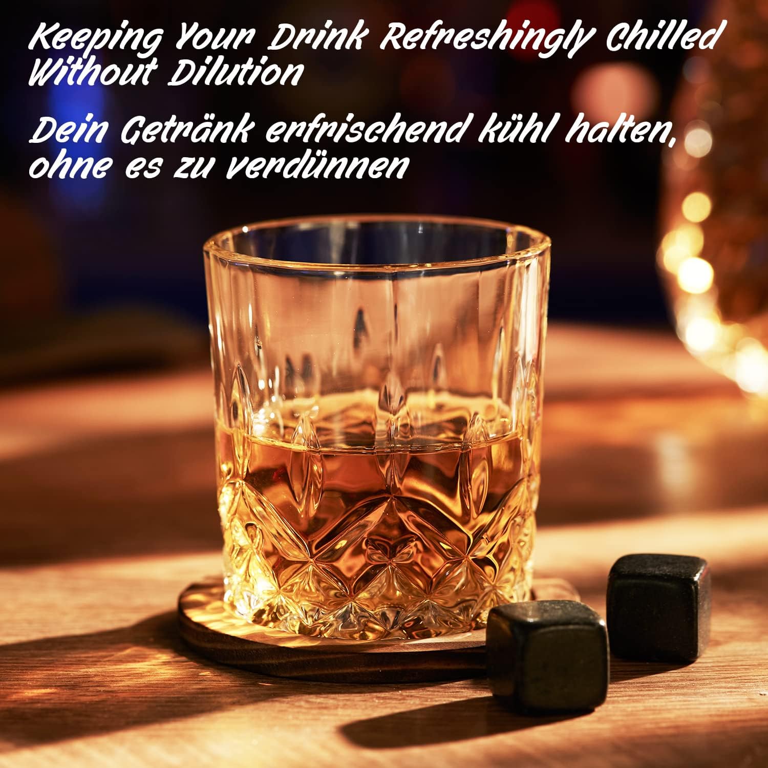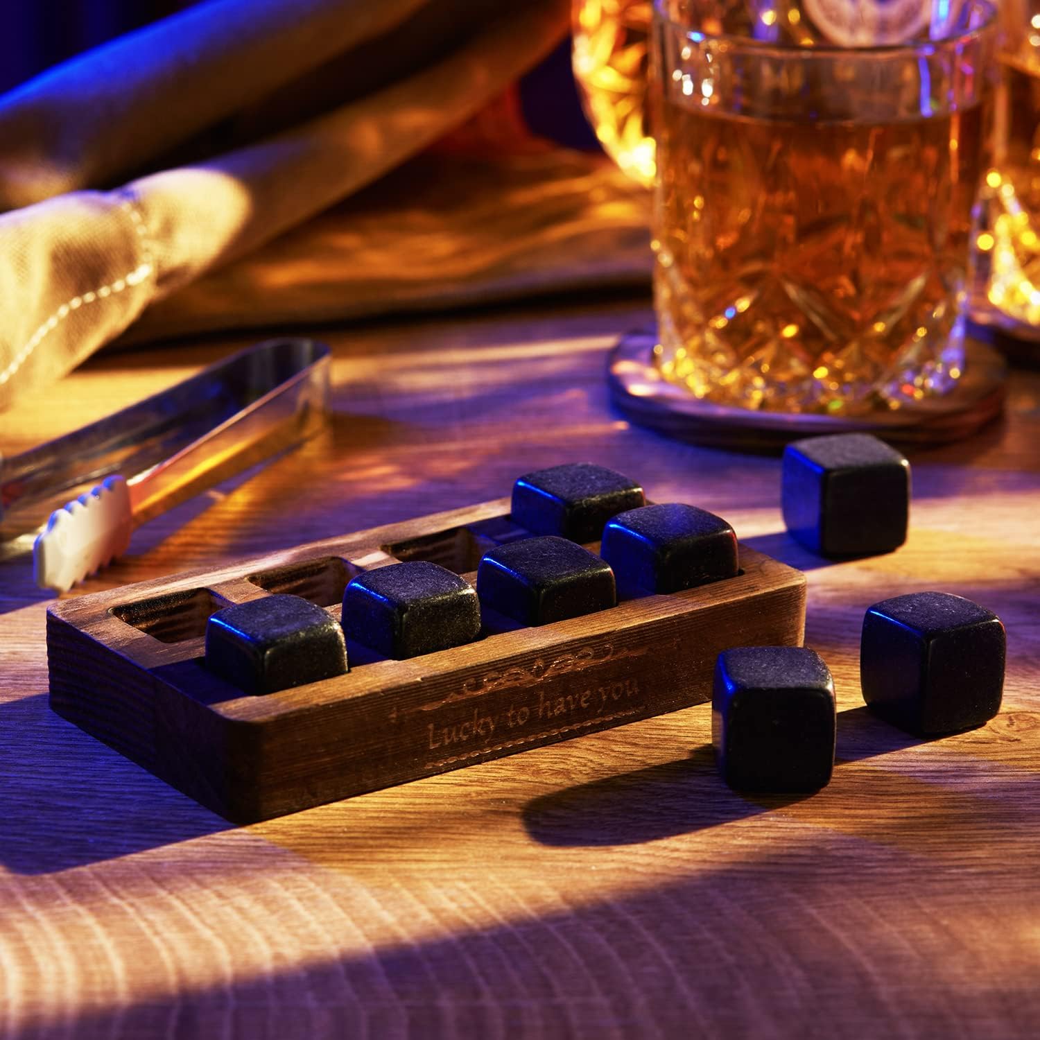 【Interessante Decorazione in Legno】 La confezione regalo include 1 pallet di legno per pietre di whisky e 2 sottobicchieri in legno per bicchieri di whisky. Dopo la cottura, la superficie si presenta con un tradizionale disegno del legno che risentirà in ogni occasione dei segni degli anni di precipitazione. Perfetto come regalo di compleanno o regalo d’addio per un amico, padre, marito. Adatto anche da regalare in occasione di matrimoni, anniversari.