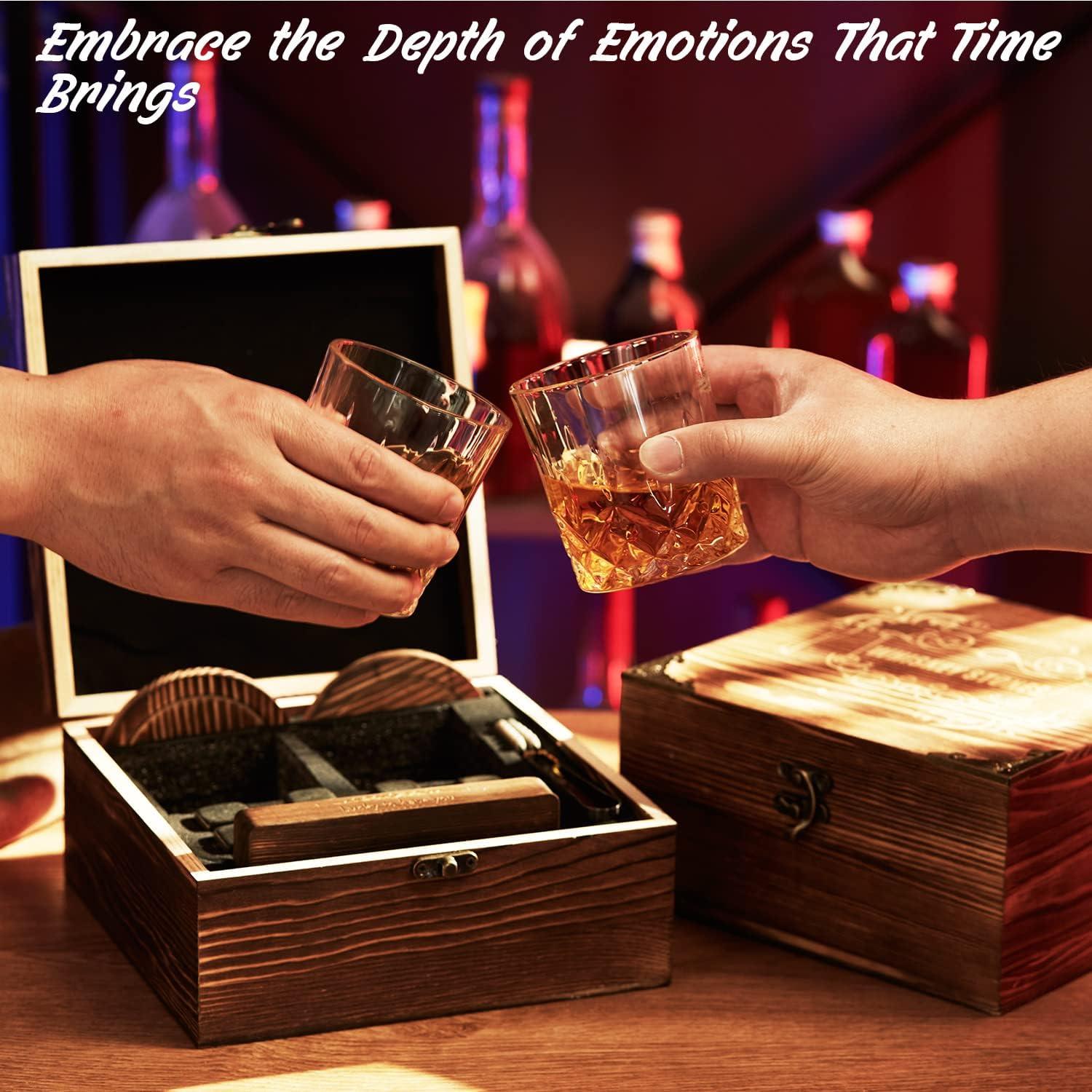 【Regalo da Gentiluomo per Uomo】 La confezione regalo in legno fatta a mano, con quattro angoli realizzati con bordi in metallo, è molto adatta come regalo per vari festival e celebrazioni. Apri la confezione regalo e riceverai 8 pietre da whisky, 2 bicchieri da whisky, 2 sottobicchieri in legno, 1 clip in silicone, 1 vassoio in legno. Che sia sul tavolo da pranzo, al bar o sul tavolino laterale, è la migliore decorazione per gli uomini.