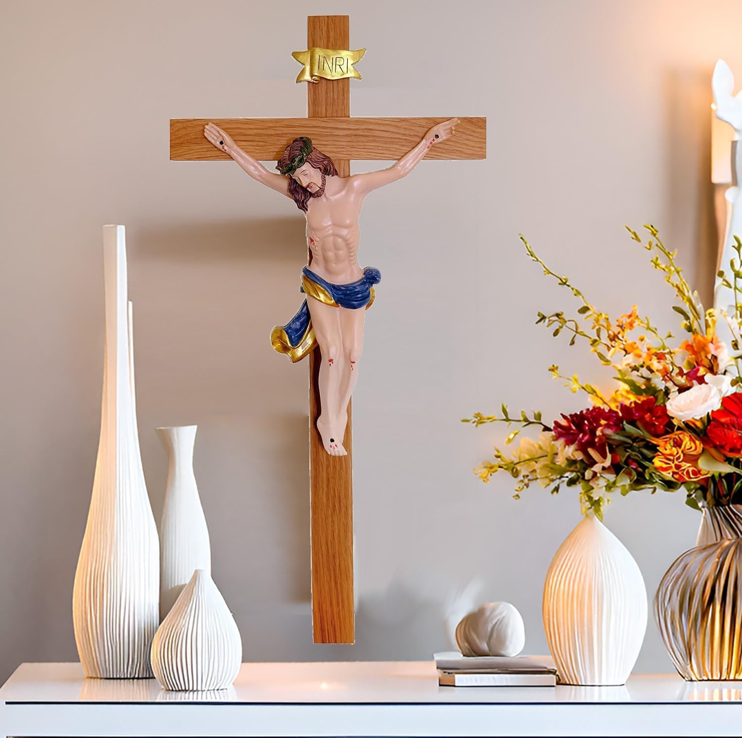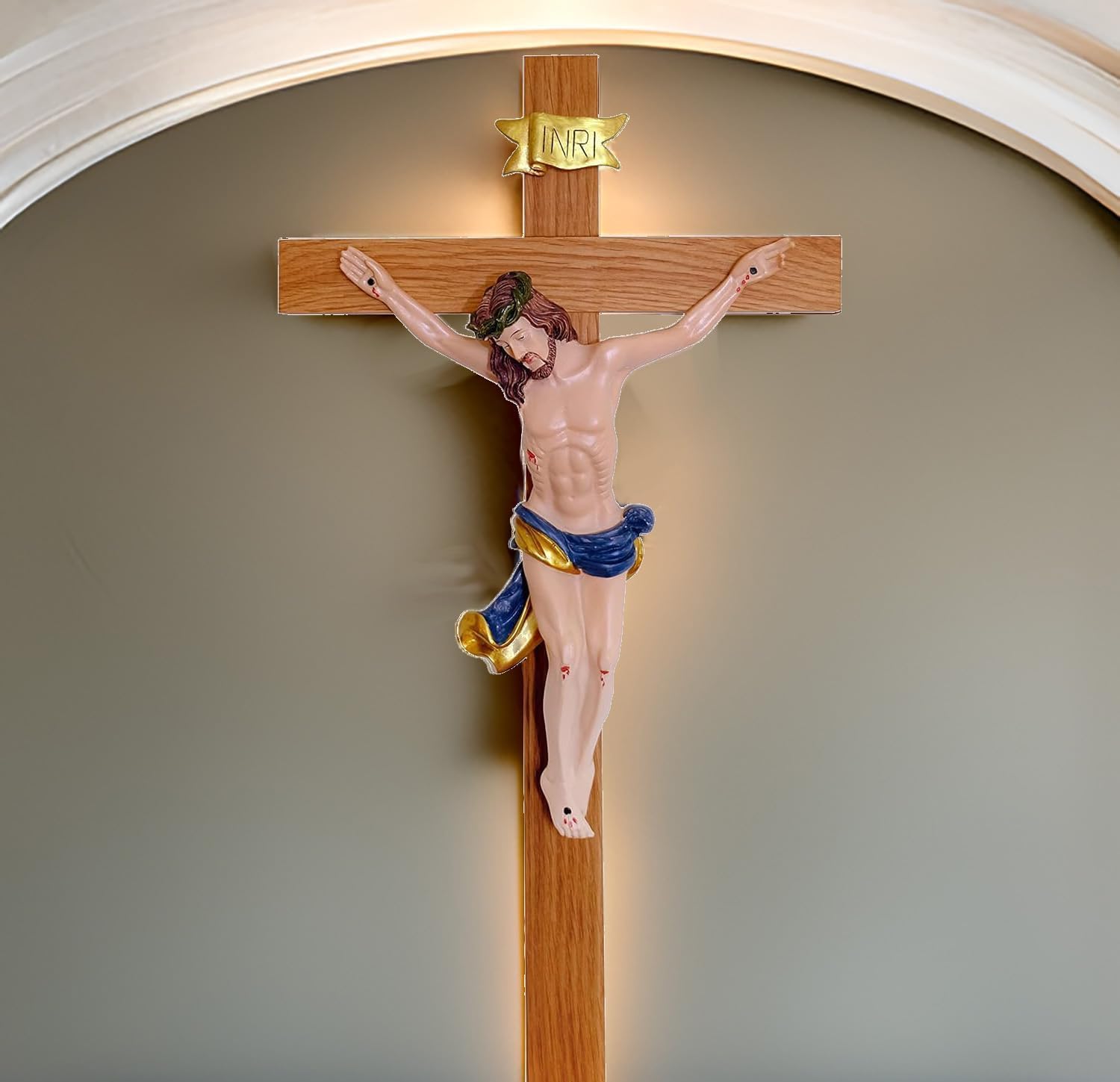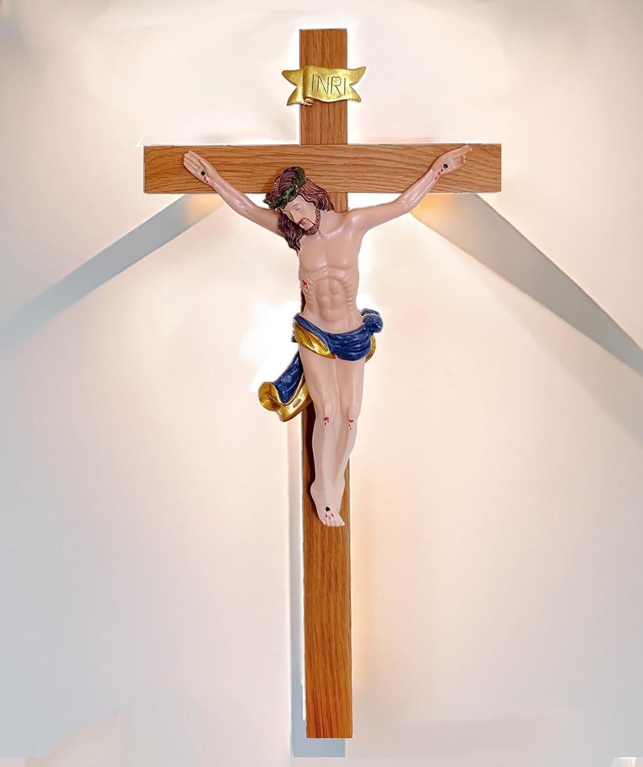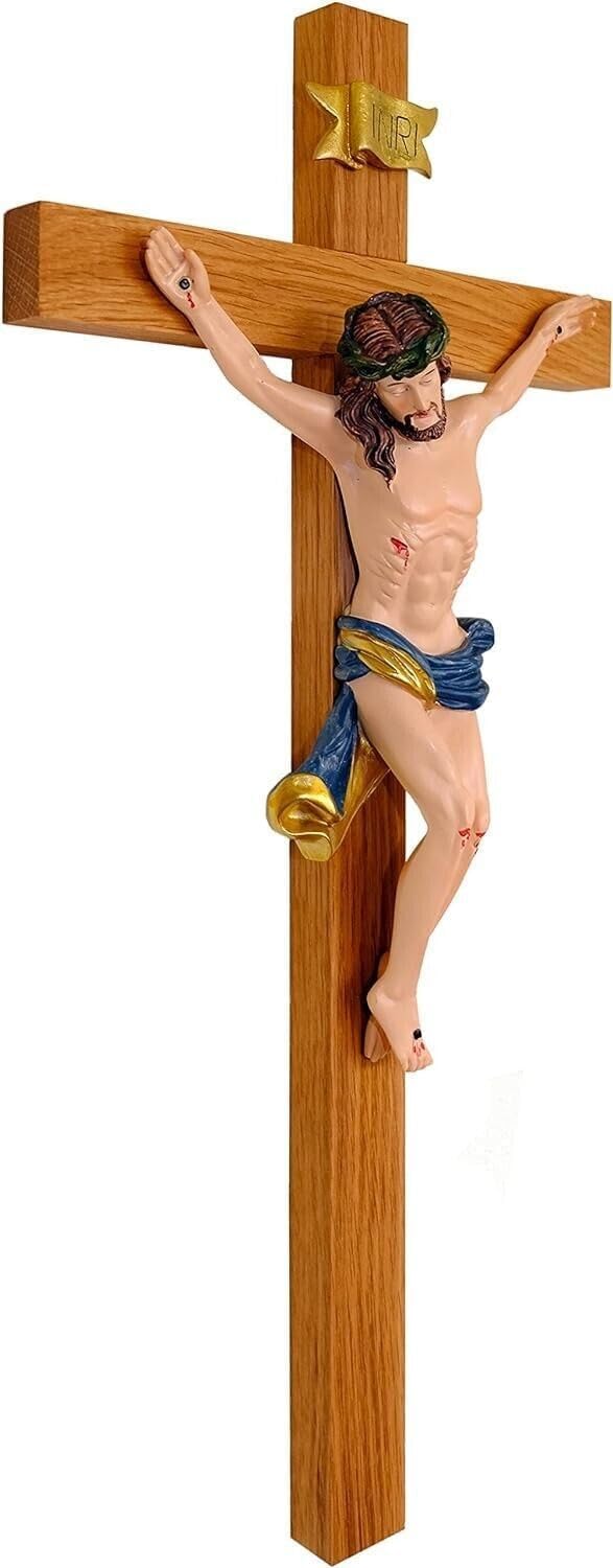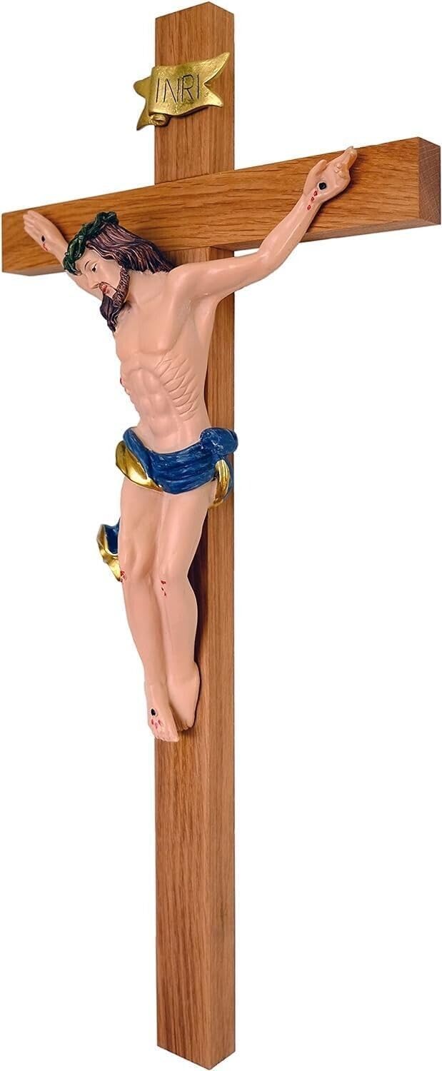 Kaltner Präsente, crocifisso con Gesù Cristo, da parete, in legno, 35 cm, dipinto a mano – idea regalo as roma