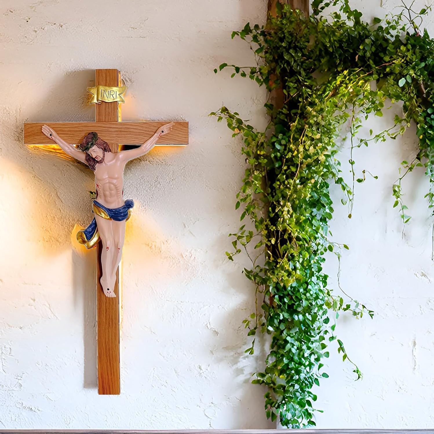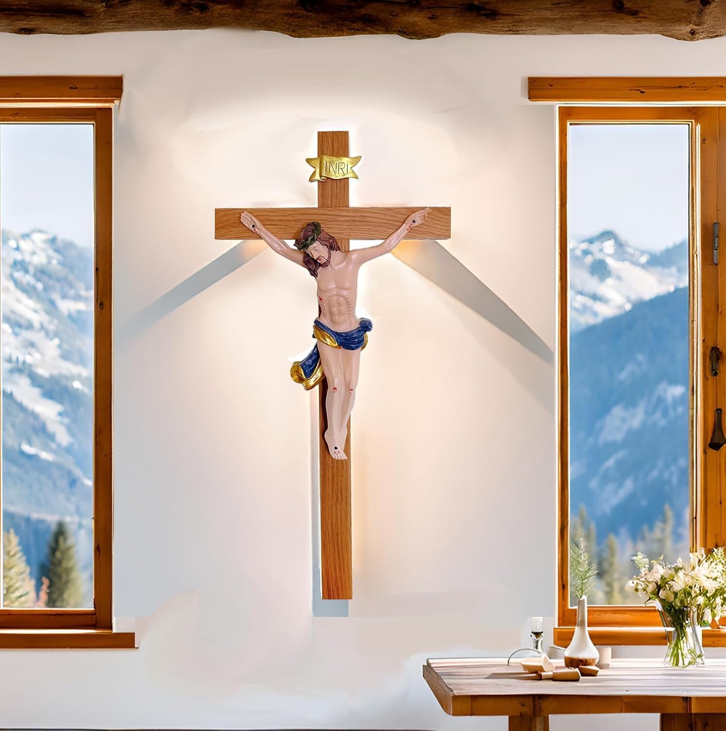 Kaltner Präsente – Croce da parete in legno con Gesù Cristo, altezza 35 cm