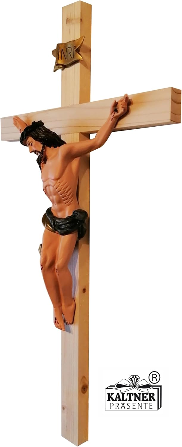 #Kaltner #Präsente #Idea #regalo #Crocifisso #parete #legno #abete #naturale #con #Gesù #Cristo #croce #dipinta #mano