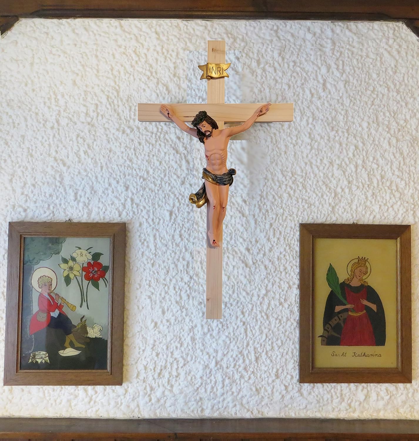 Dipinto: dipinto elaborato, elegante e allo stesso tempo sobrio della figura di Gesù sulla croce. Il Cristo è fatto di pietra artificiale.