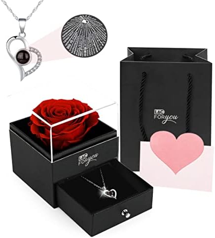 #LAC #Rosa #Stabilizzata #Vera #con #Collana #Idea #Regalo #Donna #Anniversario #Compleanno #San #Valentino #Natale