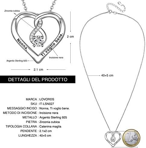 #LOVORDS #Collana #Donna #Incisa #Personalizzata #Argento #Sterling #Pendente #Ciondolo #Cuore #Infinito #Regalo #Mamma #Madre #Fidanzata #Moglie #Nonna #Figlia