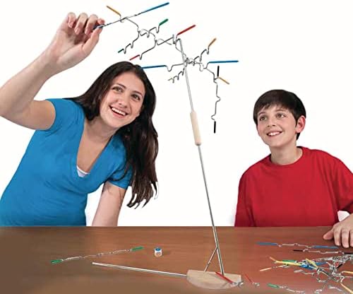 Include 24 aste da gioco, una base in legno, 4 aste su cui costruire, un dado colorato e un raccordo in legno.