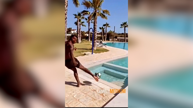 Il calciatore italiano ha giocato con la tensione superficiale dell’acqua e gli effetti della palla per eseguire tre “scatti” di crescente difficoltà.