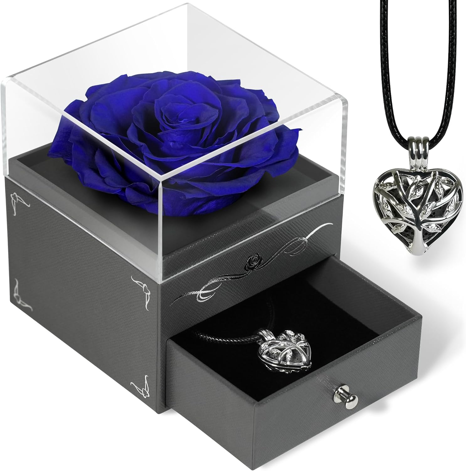 Rosa Stabilizzata Vera, Rosa Blu Stabilizzata, Rosa Eterna Stabilizzata, Collana Aromaterapia, Fiori Stabilizzati Veri, Idea regalo donna, Regalo Mamma Compleanno, Regalo per la Festa della Mamma – idea regalo romanista