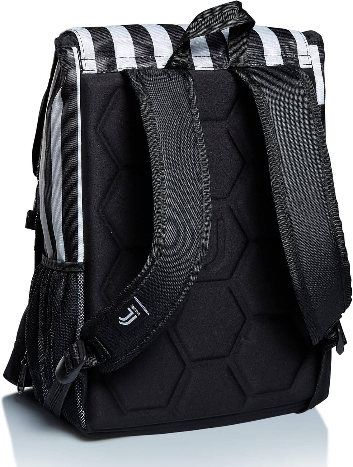 Lo zaino estensibile Juventus, con abbinato un fantastico orologio, ha la zip laterale per moltiplicare lo spazio quando il carico si fa pesante. Ha un’ampia tasca frontale preformata con pattina in rete estraibile per darti la possibilità di portare sempre con te un pallone e una tasca laterale in rete porta borraccia. Lo schienale è preformato e personalizzato con fondo rigido e gli spallacci sono imbottiti e traspiranti per garantire il massimo grado di comodità.